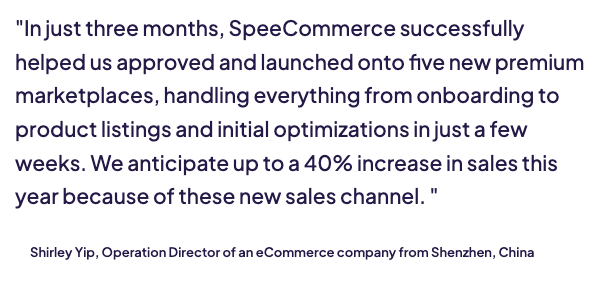 Shirley Yip, Operations Director of a leading home category eCommerce business in Shenzhen, China, was tasked with driving multi-channel expansion. One of her key performance indicators for the year was to identify and launch the business onto new marketplace channels, ensuring long-term growth and diversification.